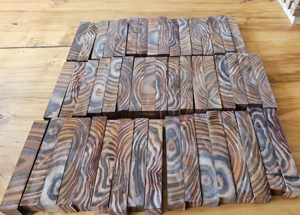 - Het betreft kops hout (gedeeltelijk crosscut) om zoveel mogenlijk tekening in het hout te krijgen.