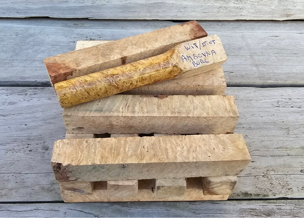 Amboyna Burl wit/spint 24x24x150mm
