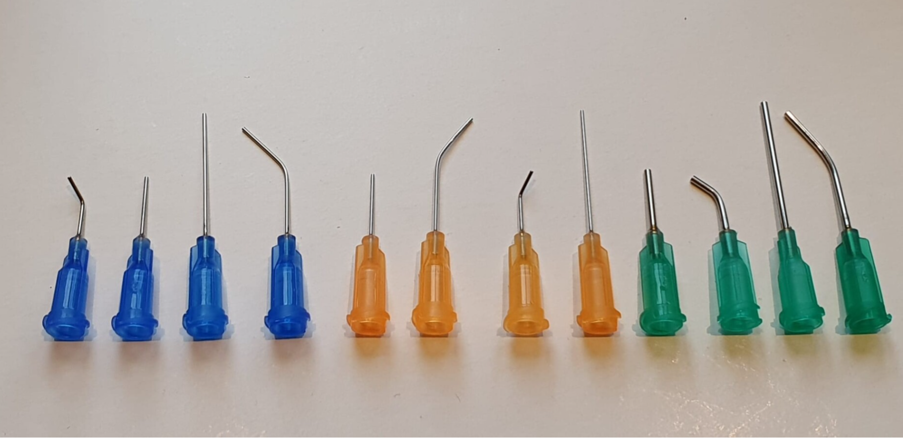 Door de doseernaalden meteen na gebruik door te blazen met perslucht kan deze meerder malen gebruikt worden. De metalen naalden kunnen door verwarming met een aansteker ook weer vrijgemaakt worden. (let op brandgevaar!)