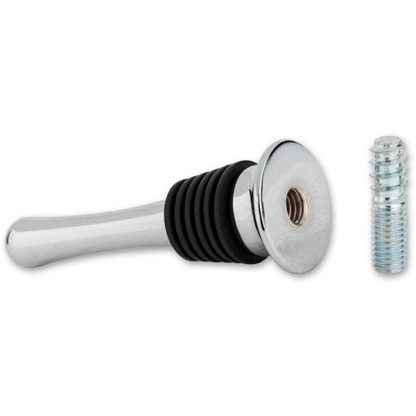 Een taps toelopende siliconenrubberen pakking fungeert als afdichting. Elke set bevat een schroef met twee uiteinden; de ene helft voor te schroeven in een voorgeboord gat in uw hout. De andere helft heeft een M8-schroefdraad, die vervolgens in het stopperlichaam wordt geschroefd om de twee delen te bevestigen.