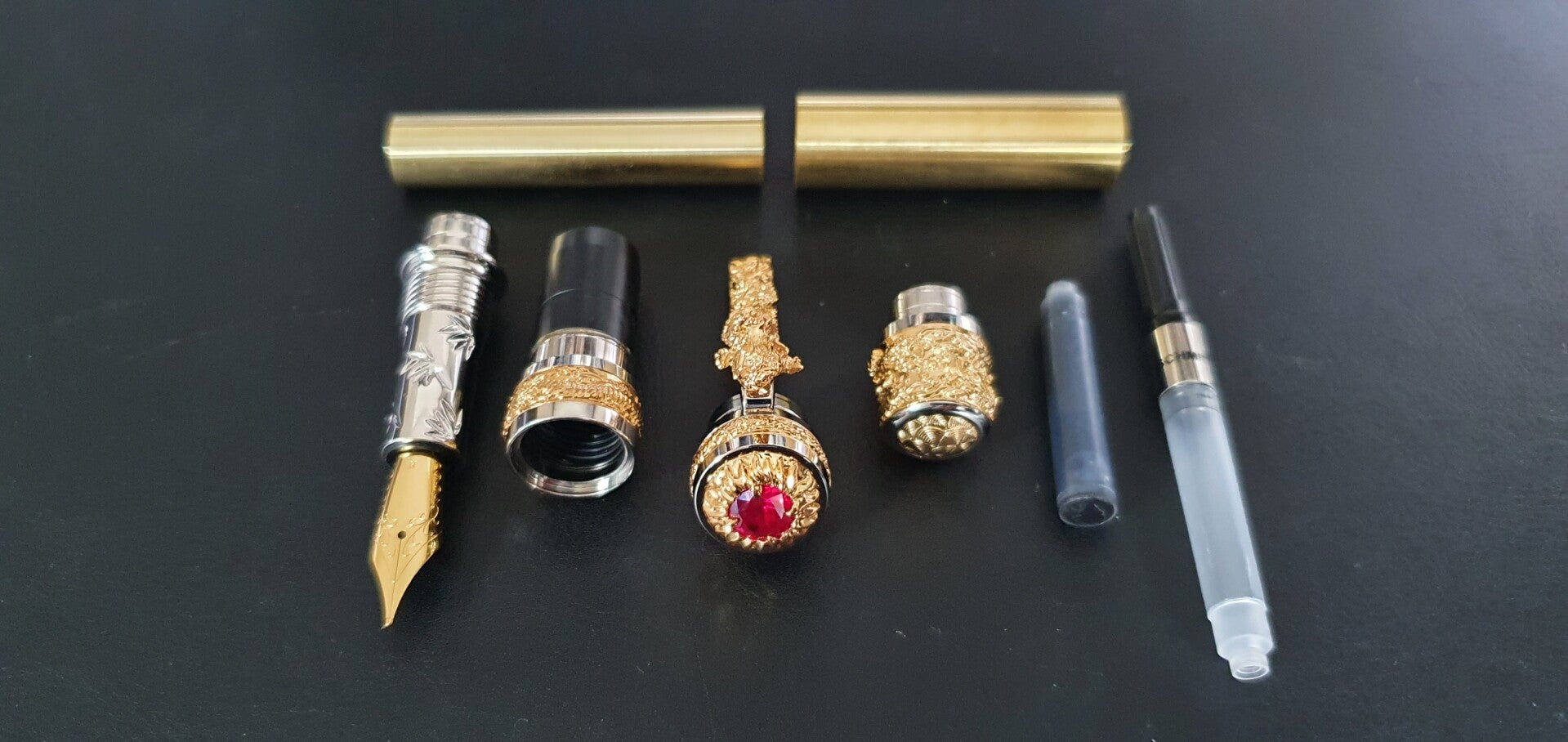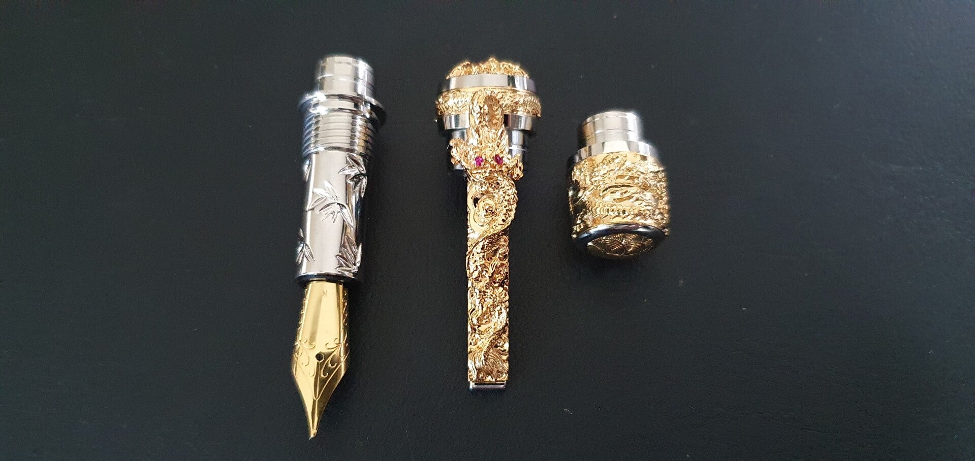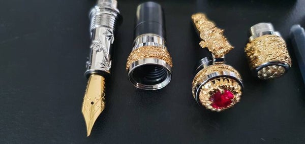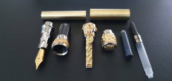 - Zeer gedetailleerd Dragon-details op de pen kit, verguld met goud en palladium plating.